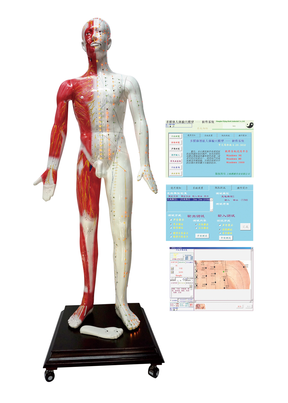 多媒體人體針灸穴位發(fā)光模型... 該系統(tǒng)融計(jì)算機(jī)技術(shù)、電子控制技術(shù)、多媒體技術(shù)、腧穴理論于一體;聲音、屏幕、人體模型同步控制筋絡(luò)腧穴的信息;顯示十二經(jīng)脈循環(huán)流注,經(jīng)脈絡(luò)屬表理對經(jīng)關(guān)系,特定穴的分布;加之屏幕表層、淺層、深層穴位解剖圖的配合,常見病的辯施治,隨證選穴的查詢及處理輸出,使學(xué)員對人體經(jīng)絡(luò)腧穴信息有更全方位的了解,更有利于加深印象與理解掌握;同時(shí),亦可用于臨床與科研參考。